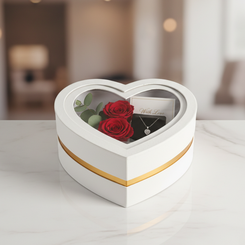اكتشفوا مجموعة علب الهدايا البيضاء بتصميم القلب، لم