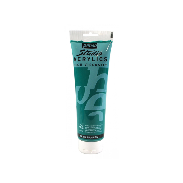 Peinture à l’eau qualité fine, teinte Émeraude de phtalocyanine. Nuance vert froid, finition mate satinée.