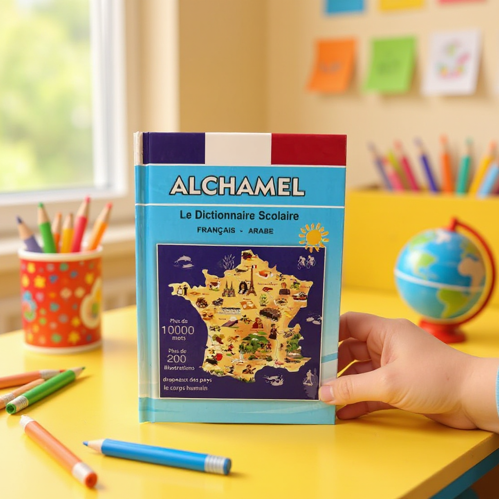 ALCHAMEL Dictionnaire Scolaire FR/AR – 10000 Mots | Parascolaire : Le dictionnaire scolaire Français-Arabe ALCHAMEL est un outil pédagogique bilingue conçu pour les élèves en Tunisie, facilitant l’acquisition du vocabulaire essentiel. Il propose plus de 10 000 mots et expressions avec leur traduction directe, enrichis par plus de 200 illustrations thématiques pour une meilleure mémorisation visuelle. Cet ouvrage de référence inclut des planches illustrées sur des sujets variés comme le corps humain et les drapeaux du monde, le rendant parfaitement adapté au programme scolaire. Sa structure claire et son contenu visuel en font un support indispensable pour les élèves du primaire et du collège. C’est le compagnon idéal pour maîtriser les bases du français et de l’arabe et réussir son parcours scolaire.