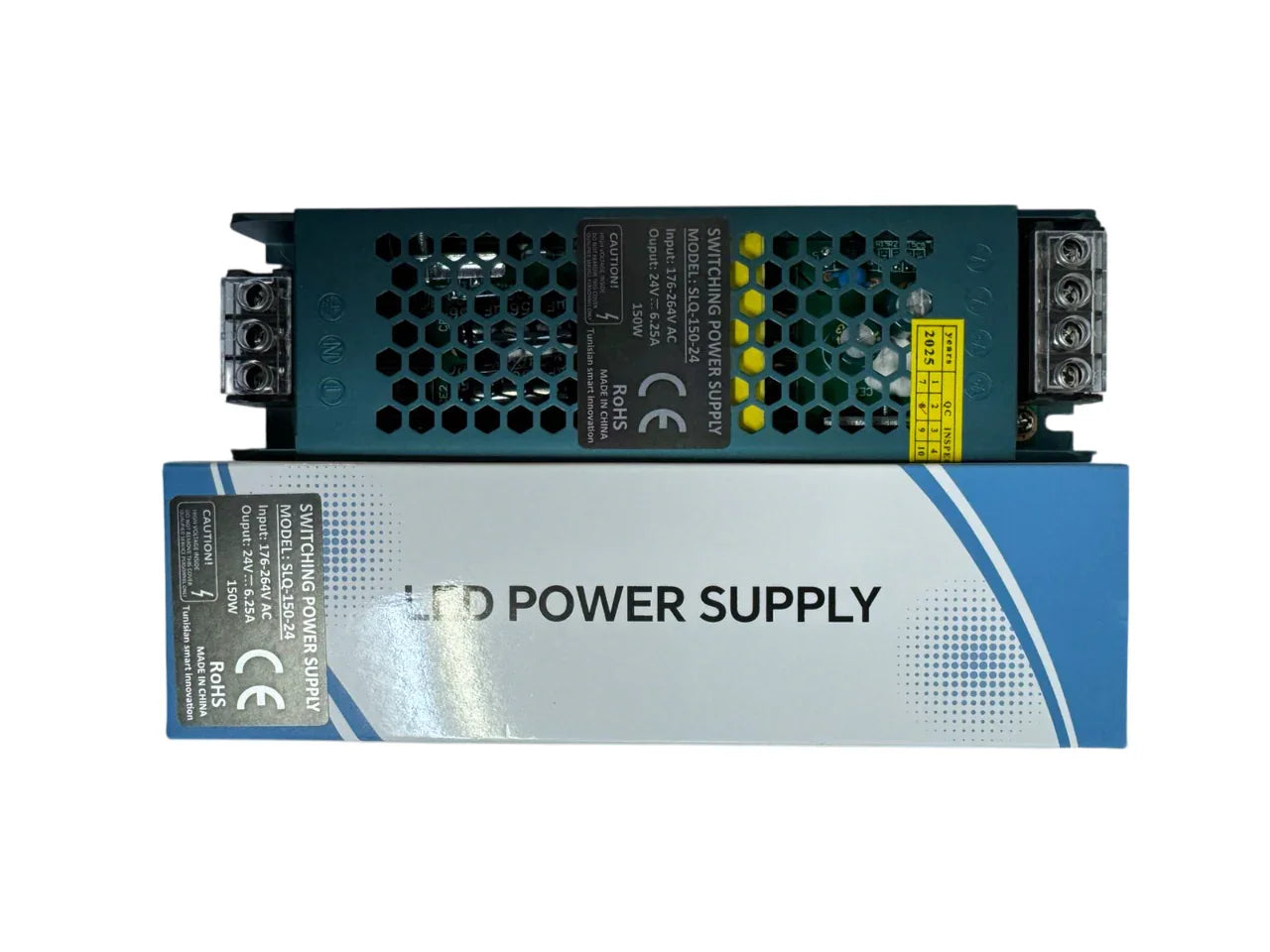 L’alimentation à découpage 150W, possède un interrupteur pour sélectionner la tension d’entrée entre AC 176~264V et une sortie de 24V-DC 6.25A, la tension de sortie peut être ajustée autour de ± 10%, compensant la chute tension entre la source d’alimentation et le point de consommation.