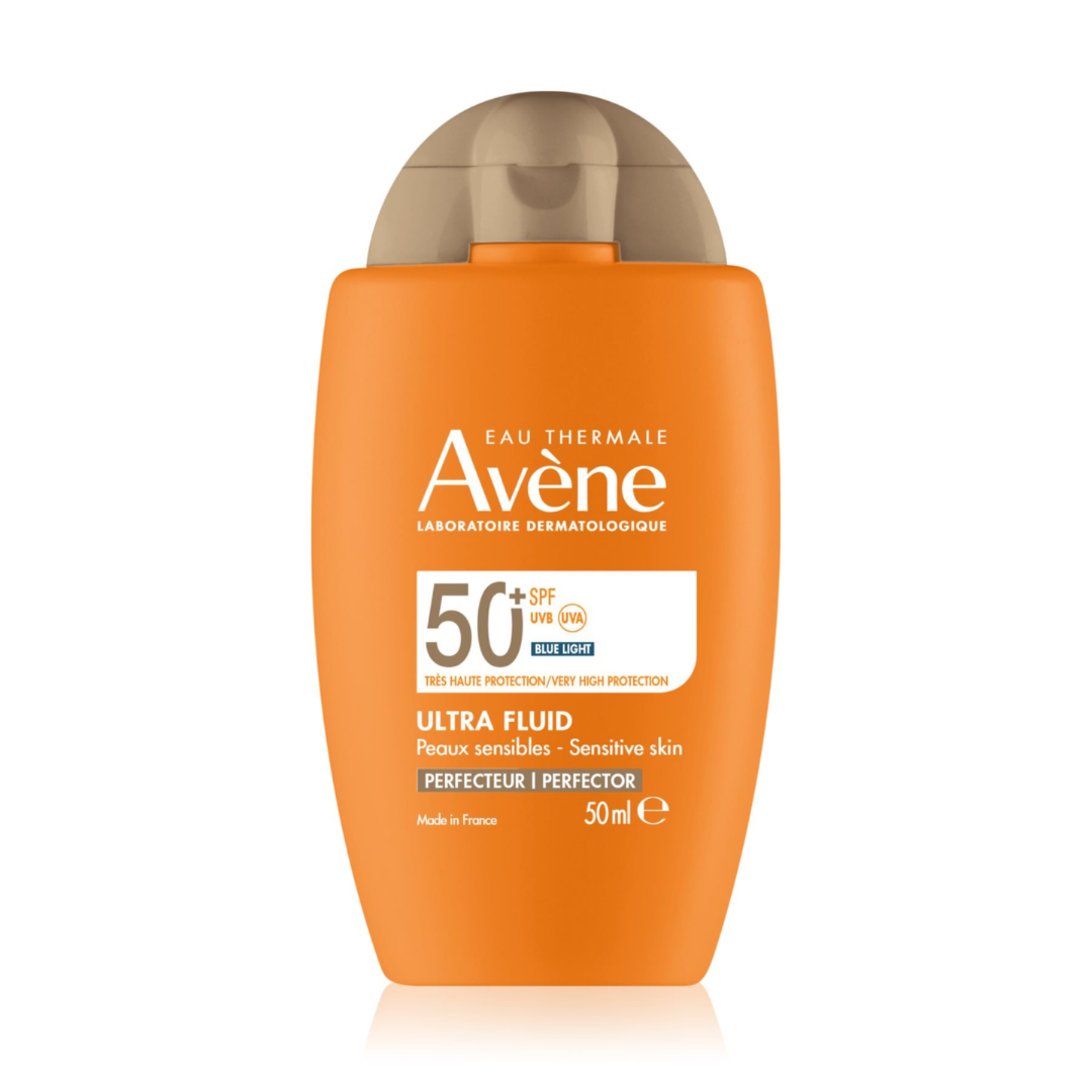 Avène Ultra Fluid Perfecteur Teinté SPF50+ 50ml est un soin solaire quotidien teinté pour le visage, idéal pour les peaux sensibles. Il combine très haute protection UVB/UVA et lumière bleue grâce au filtre breveté TriAsorB®. Sa texture ultra-légère au fini invisible affine le grain de peau, unifie le teint et offre une sensation peau nue immédiate.