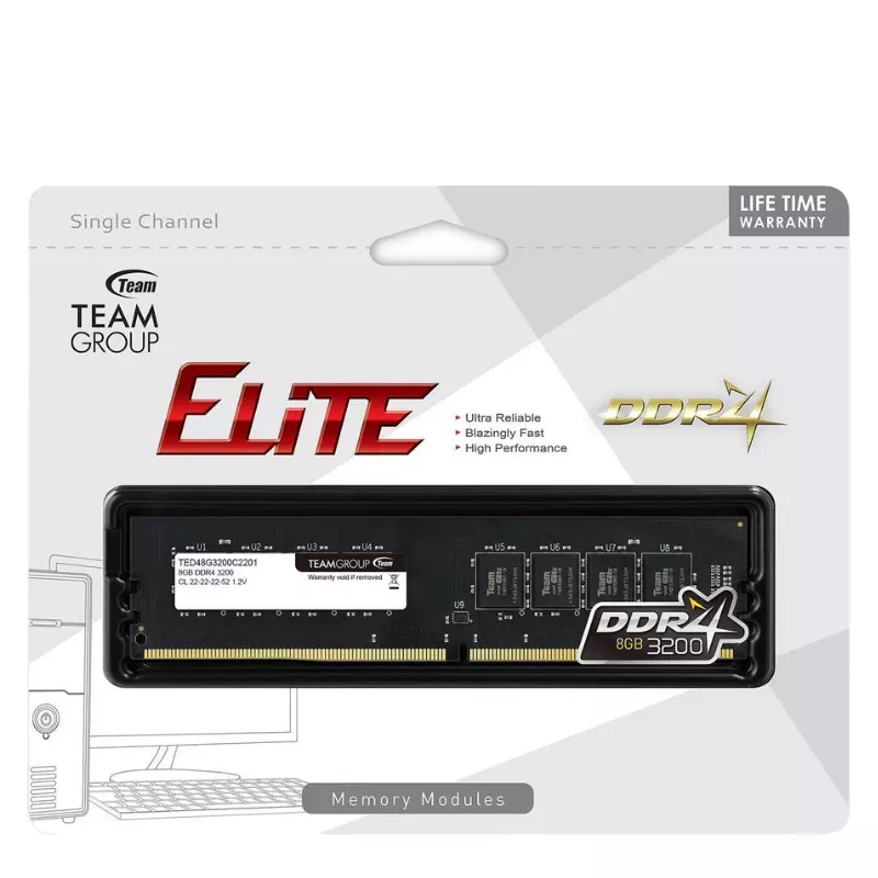 Barrette Mémoire TeamGroup Elite 8Go DDR4 3200Mhz pour Desktop