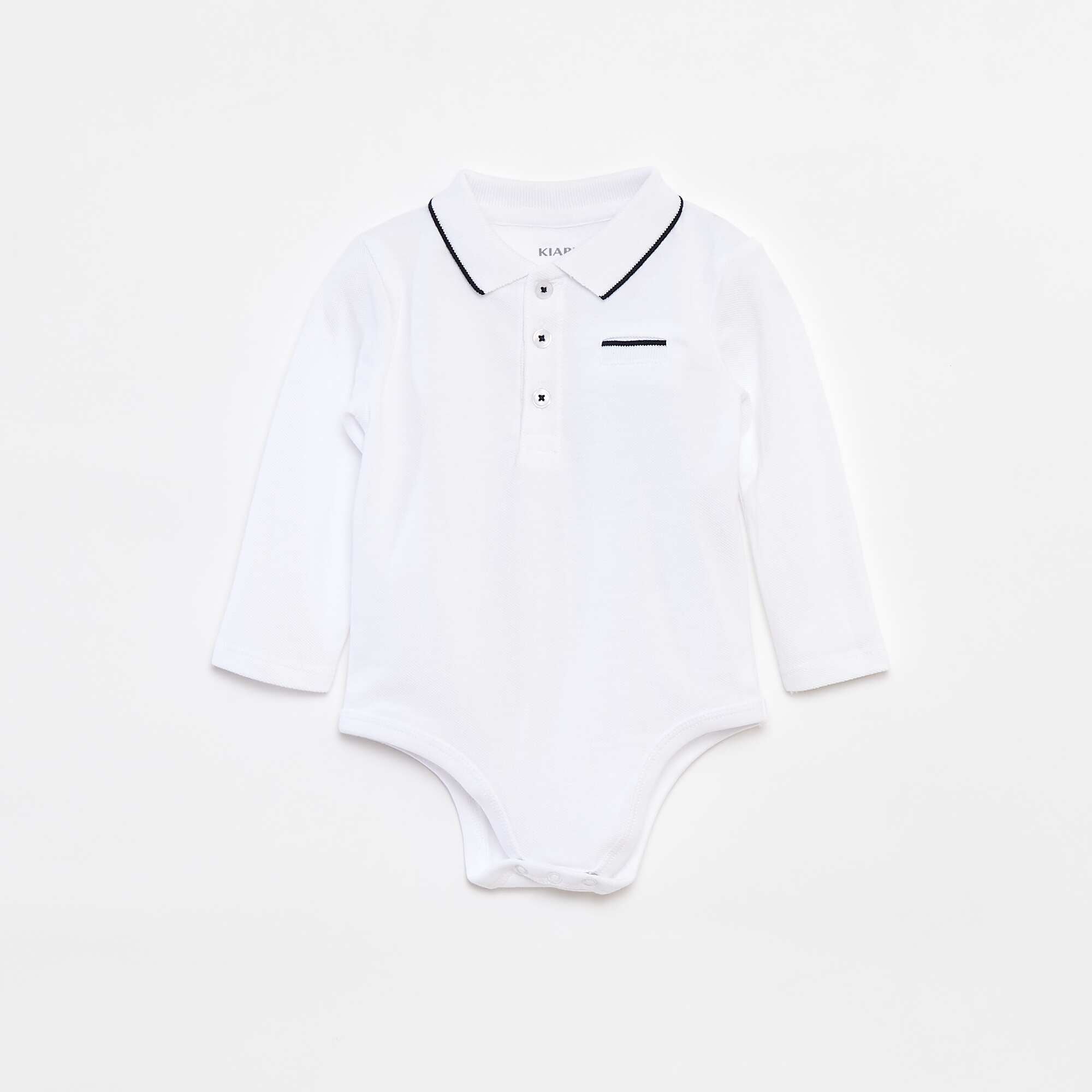 Body polo à manches longues BLANC