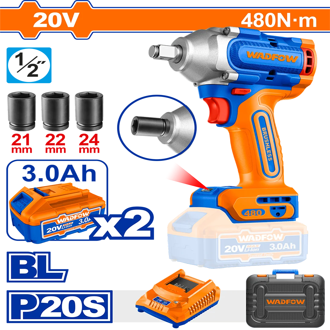 Boulonneuse sans fil 20V offrant un couple puissant de 480 N.m, conçue pour les travaux de serrage et desserrage intensifs. Livrée avec 3 accessoires, elle assure performance, précision et fiabilité pour la mécanique, la maintenance et les applications professionnelles