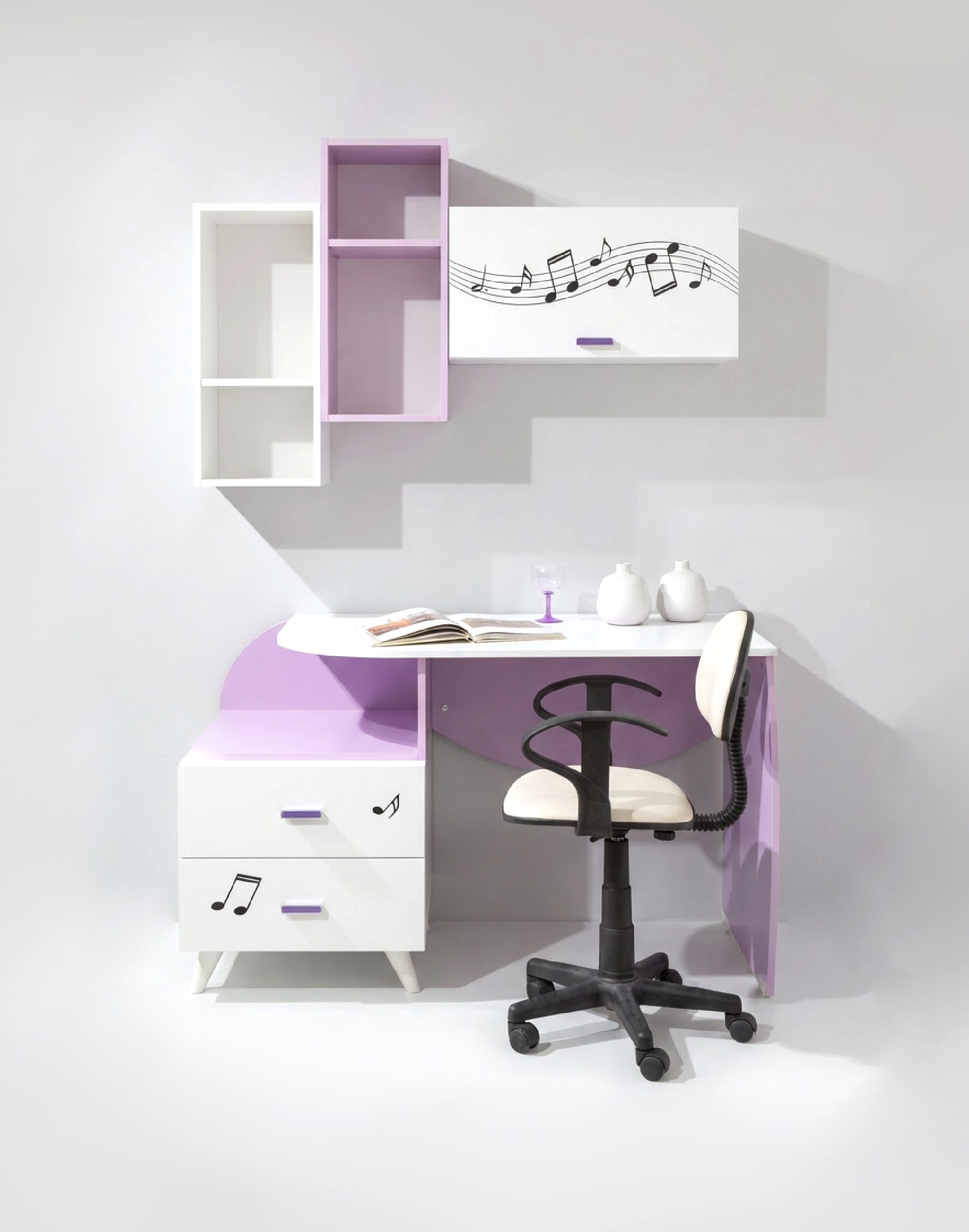 BUREAU+ETAGERES MURALE VIOLETTE