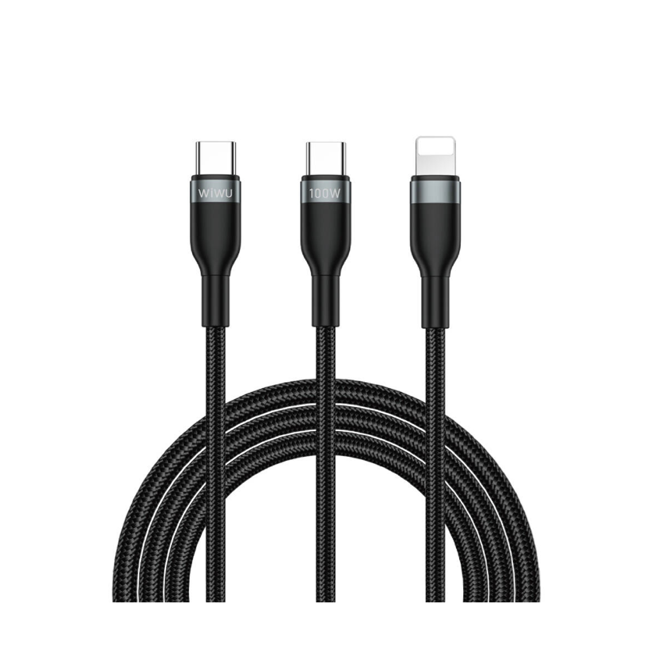 Le WIWU Wi-C029 est un câble 2 en 1 Type-C vers Type-C + Lightning, parfait pour charger aussi bien les appareils Android que Apple.