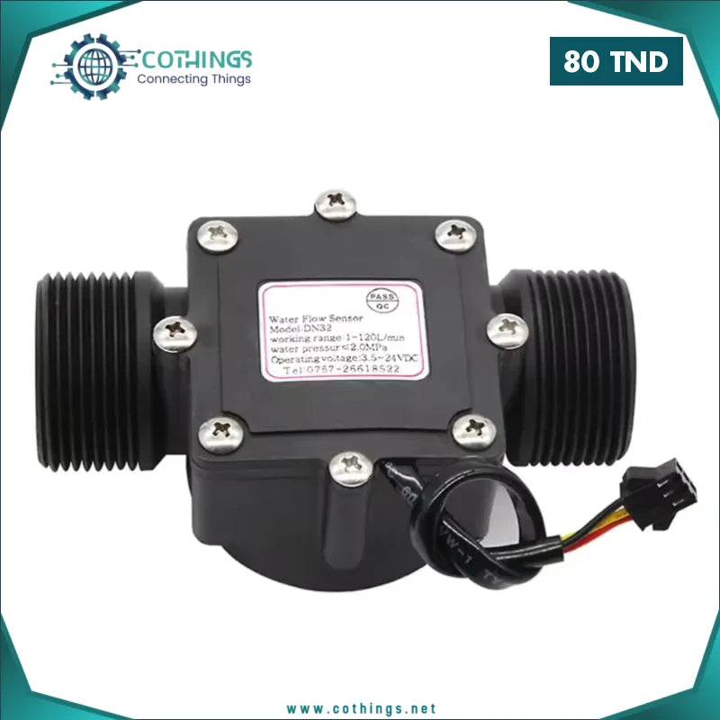 Le 57QF DN32 est un débitmètre conçu pour mesurer le flux de liquides avec précision dans les systèmes de plomberie, d’irrigation et les applications industrielles. Il est équipé d’un filetage externe standard, ce qui facilite son installation dans les tuyaux existants sans adaptateurs complexes. Ce capteur fonctionne selon le principe à effet Hall, offrant une sortie impulsionnelle proportionnelle au débit.