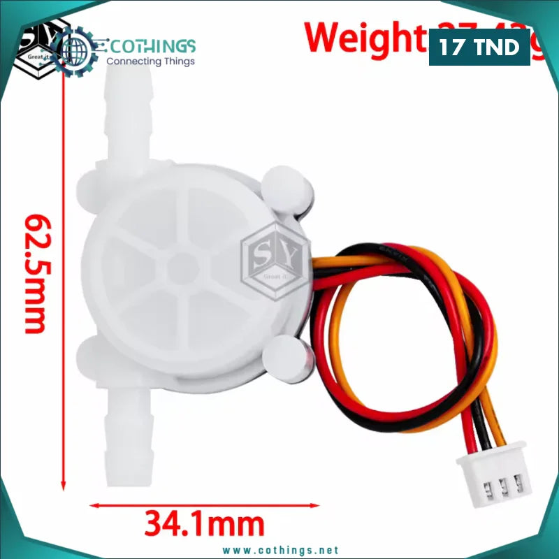Le capteur de débit YF-S401 est un débitmètre compact et haute précision utilisant un capteur à effet Hall pour fournir une mesure fiable du débit d’eau via une sortie impulsionnelle.