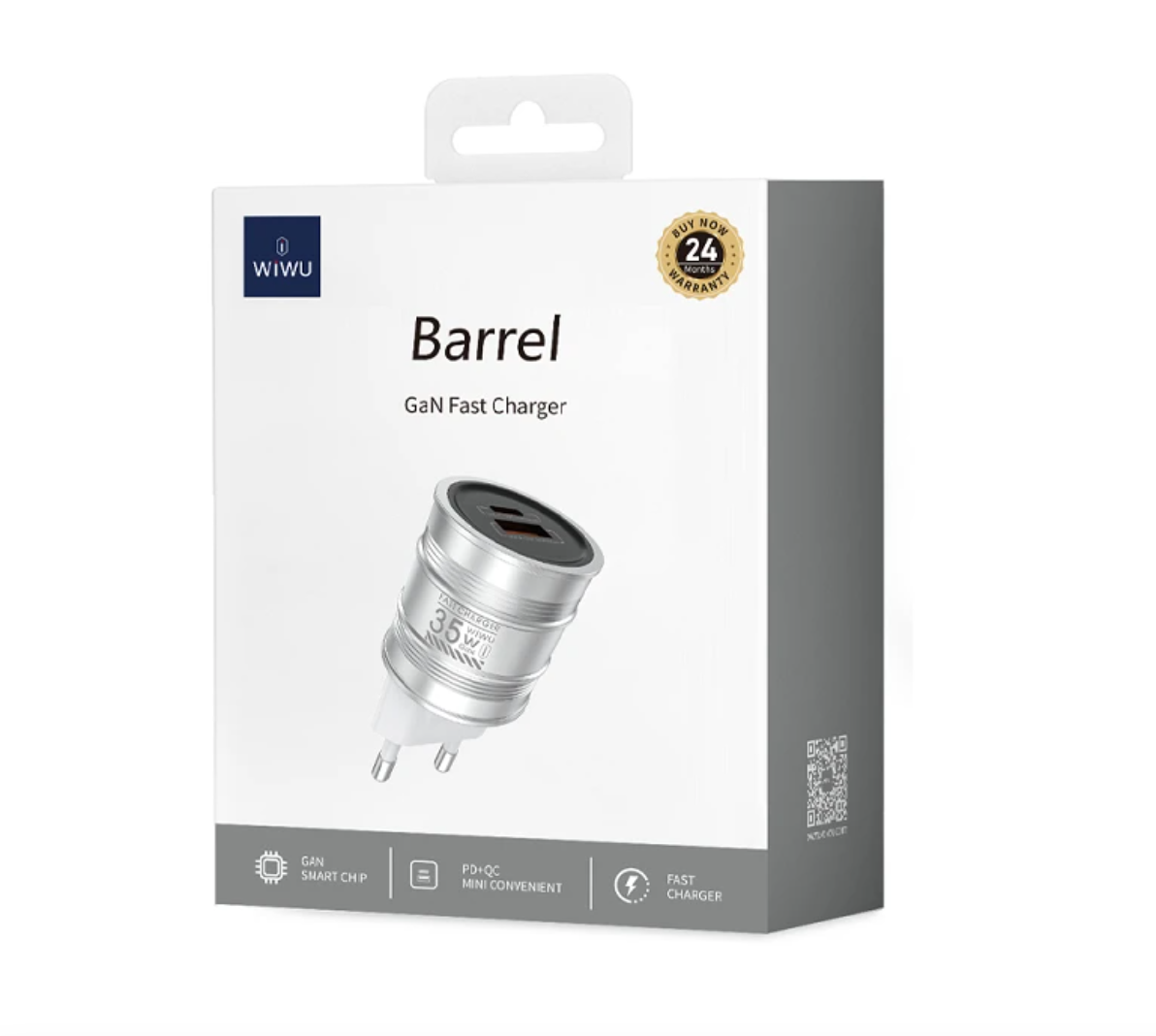 Le WiWU Charger 35W 2‑en‑1 (Barrel, U‑028) associe la technologie GaN à la puissance Quick Charge (QC) et Power Delivery (PD) pour une charge rapide et efficace. Parfait pour smartphones, tablettes ou autres gadgets, à la maison comme en voyage.