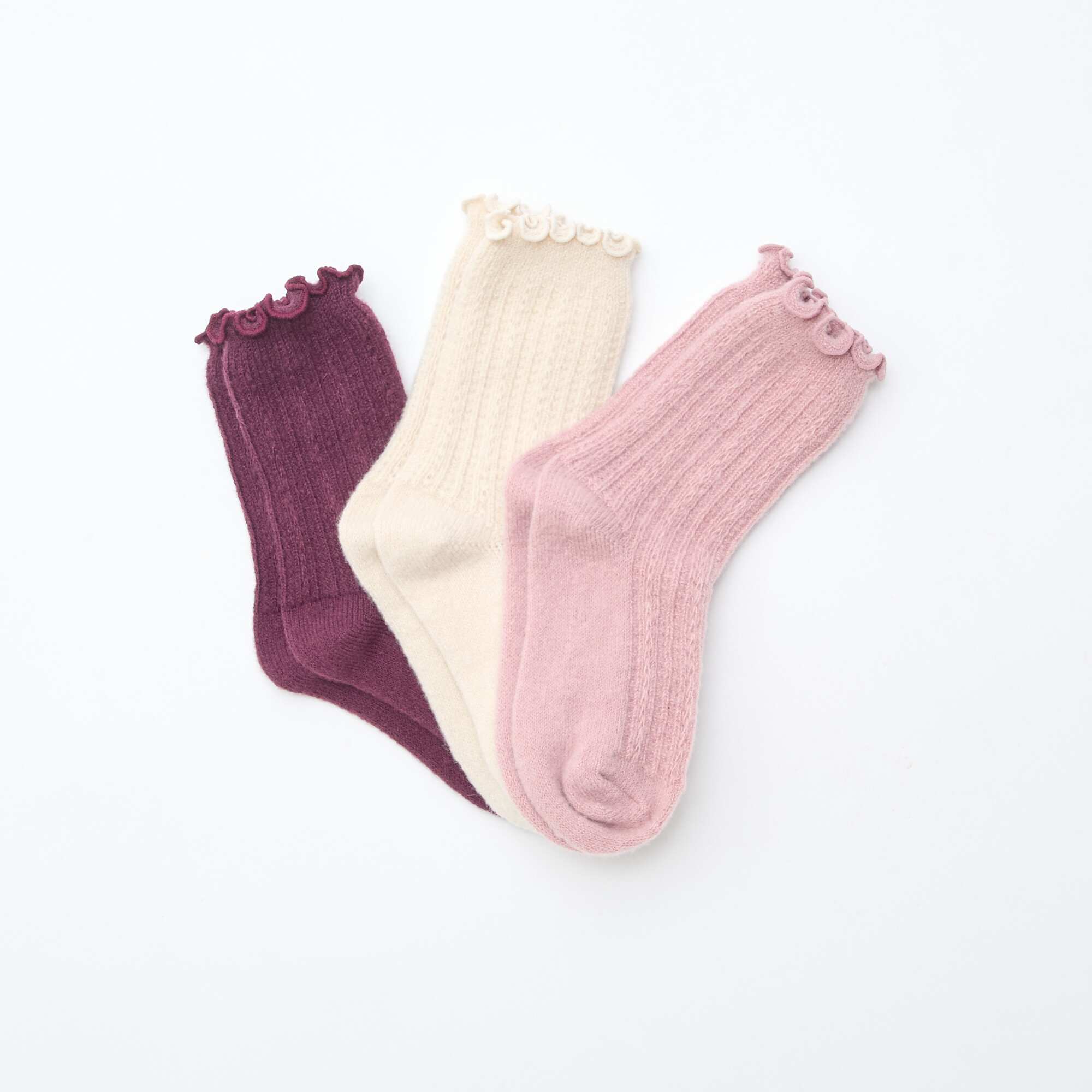Chaussettes en maille fantaisie finitions froufrous ROSE