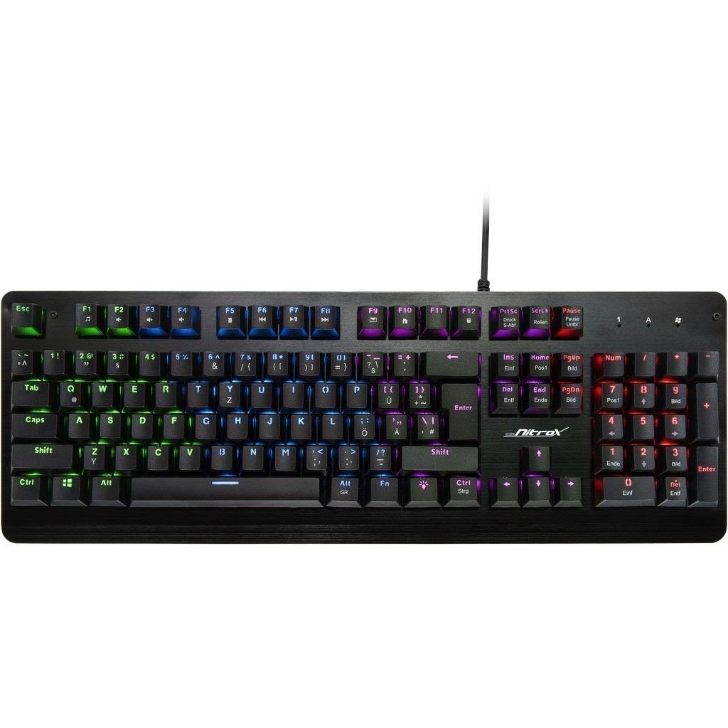 Le NK-2000ME est un clavier mécanique de haute qualité avec 104 boutons QWERTY / QWERTY et un interrupteur à clic du fabricant Huano, qui convainc par une longue durée de vie de plus de 20000000 de clics. Avec ses 26 touches, 11 touches multimédias et la possibilité de verrouiller la clé Windows dans le jeu, cest loutil idéal pour tout joueur