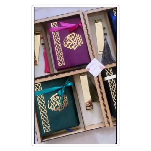 offrez un trésor de spiritualité. ce coffret artisanal renferme un coran et un marque-page unique, créés avec soin pour les amoureux de la tradition. »