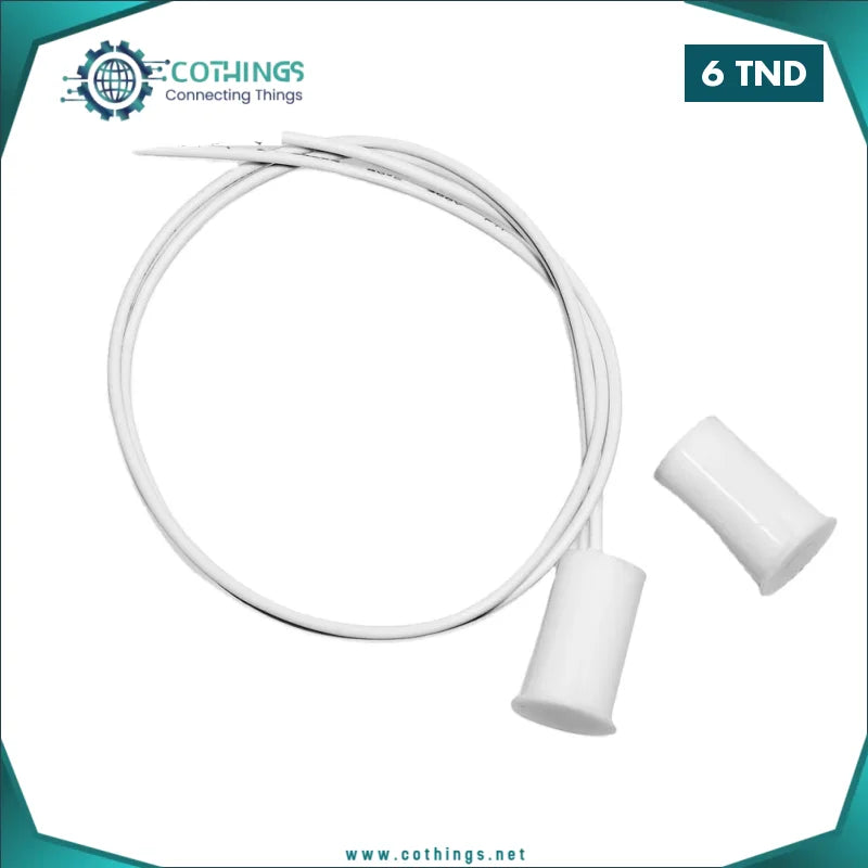 Fabriqué en plastique résistant, ce capteur fonctionne par contact sec (NO) : lorsque la porte ou la fenêtre s’ouvre, le contact s’interrompt, ce qui permet de déclencher une alarme ou d’envoyer un signal au système de sécurité.