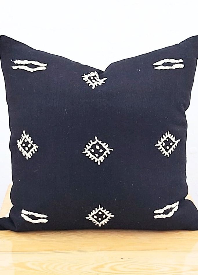Coussin décoratif berbère – Ce coussin artisanal, réalisé en laine de haute qualité, est un véritable chef-d’œuvre. Les motifs, inspirés de l’art traditionnel berbère, sont minutieusement brodés à la main. Les couleurs naturelles et chaleureuses créent une ambiance cosy et invitante. Un choix parfait pour ajouter une touche d’originalité à votre salon ou votre chambre. »