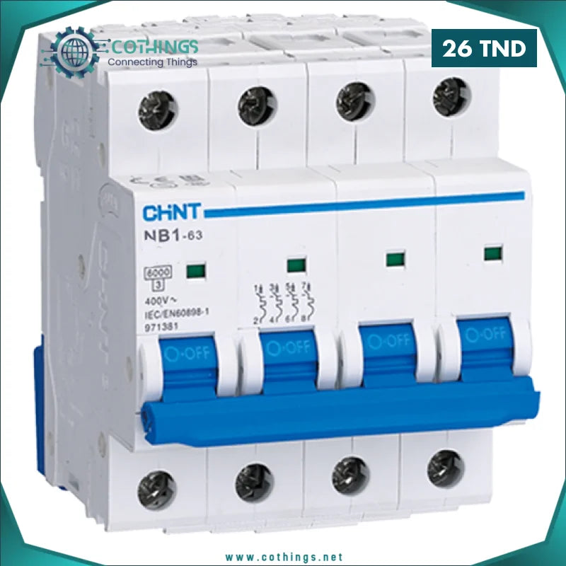 Le disjoncteur miniature NB1-63 4P 10A Courbe C est conçu pour la protection tétrapolaire (triphasé + neutre) contre les surcharges et les courts-circuits jusqu’à 6kA. Idéal pour les installations industrielles, tertiaires ou résidentielles en triphasé, il assure la sécurité des circuits avec des charges classiques grâce à sa courbe C.