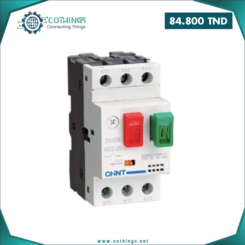 Le disjoncteur moteur NS2-25 de CHINT est conçu pour protéger efficacement les moteurs électriques contre les surcharges et les courts-circuits. Réglable de 6 à 10A, il assure une protection précise et fiable adaptée aux moteurs monophasés ou triphasés dans les applications industrielles.