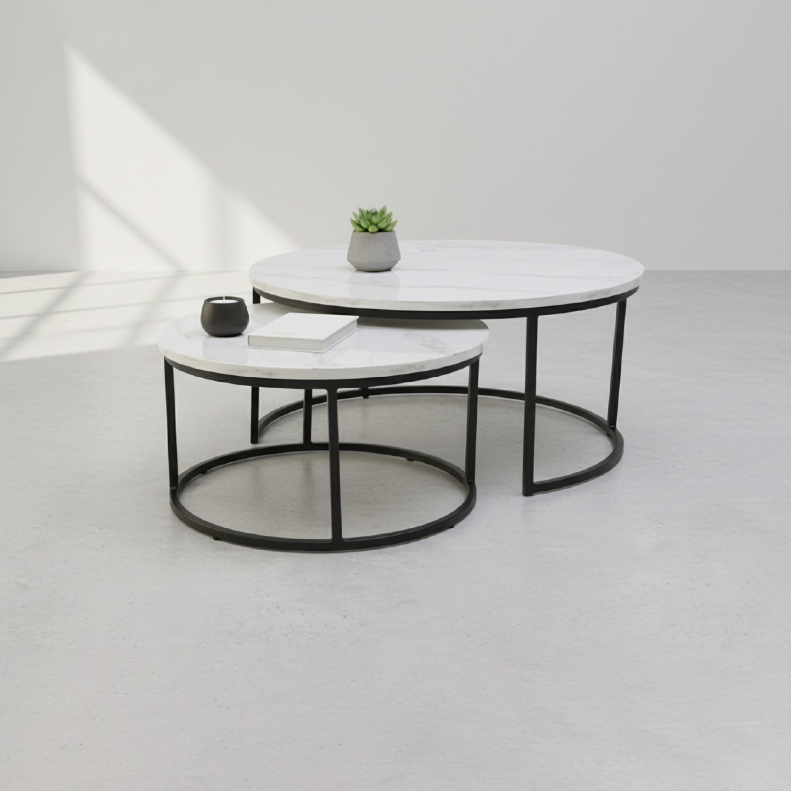 ENSEMBLE DE 2 TABLES BASSE PANAMA MARBRE SOCLE NOIR