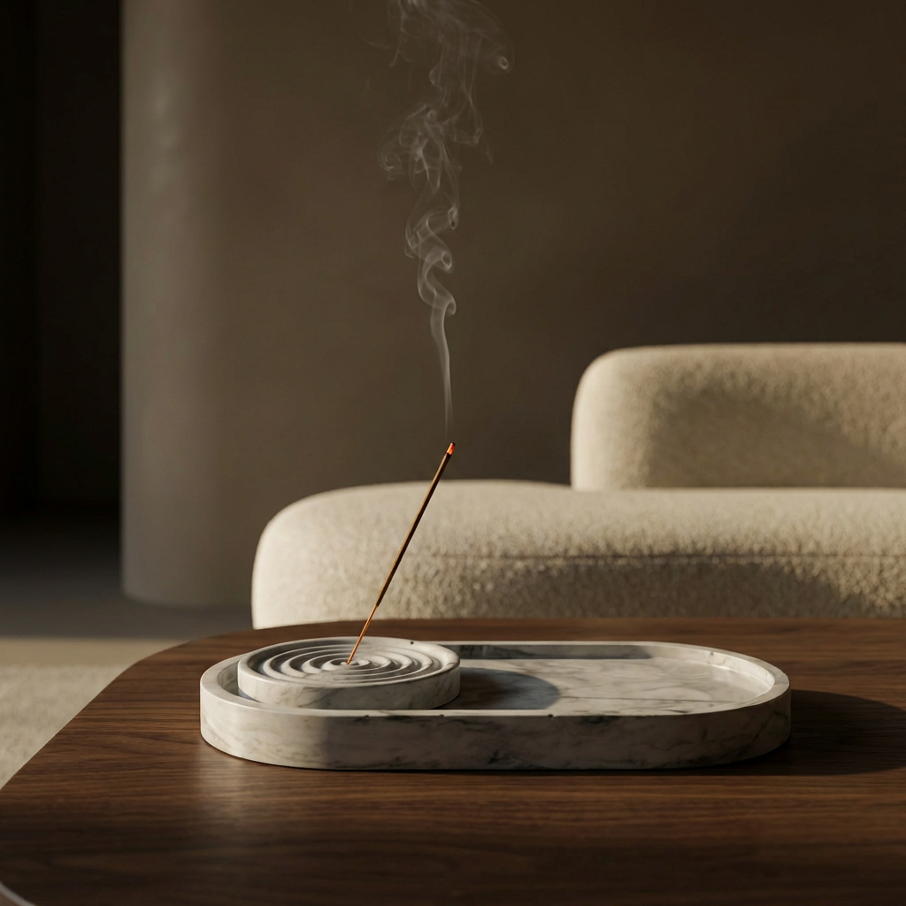 ensemble composé d’un plateau de base et d’un support porte-encens mobile. design épuré inspiré des jardins zen pour vos moments de relaxation.