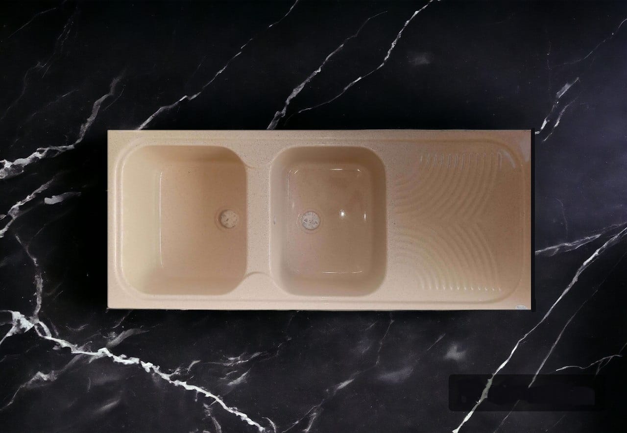 EVIER CUISINE ROCKY BEIGE 2 BACS ENCASTRABLE 118X50CM