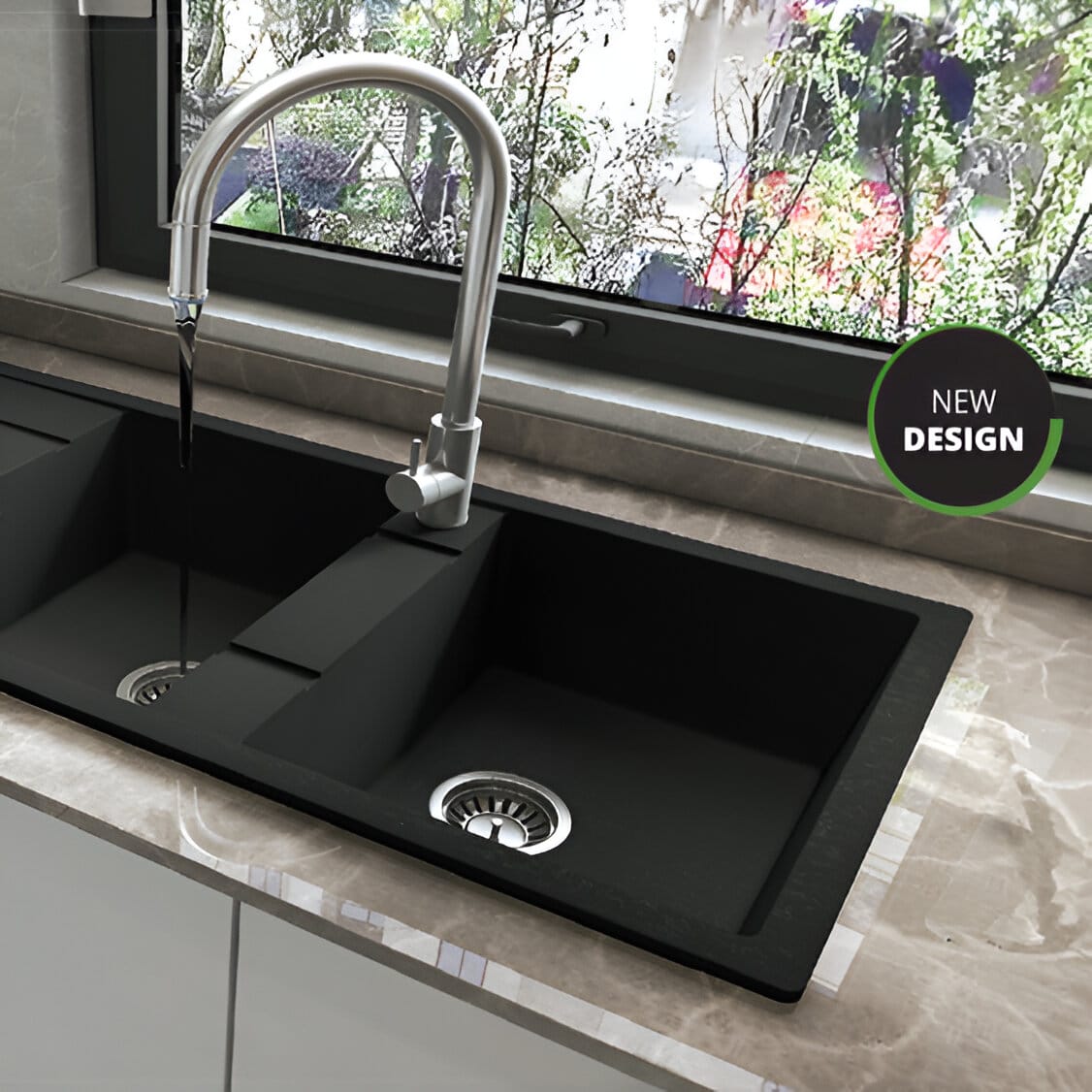 Notre évier de cuisine en granite ‘’Lisbon1150’’ sera un ajout intemporel à votre décor de cuisine. Il a deux bacs et un design élégant. son esthétique et sa praticité en vous offrant le choix de couleurs qui vous intéresse