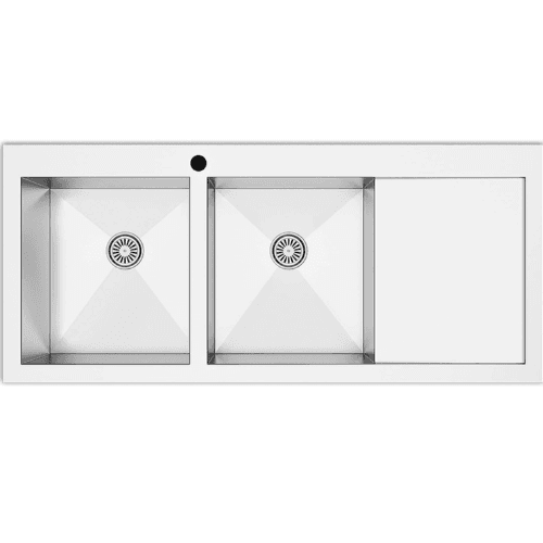 EVIER INOX 2 BACS AVEC EGOUTTOIR DESIGN 1160X510MM + SIPHON