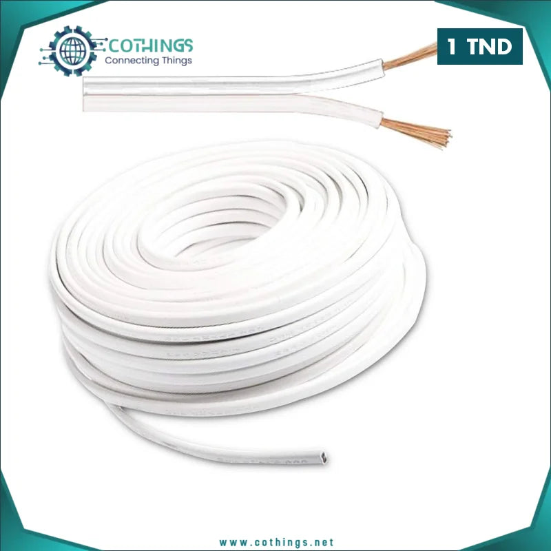 Fil électrique domestique H03 VH-H MEPLAT 2X0.50mm2 Blanc (1 mètre)