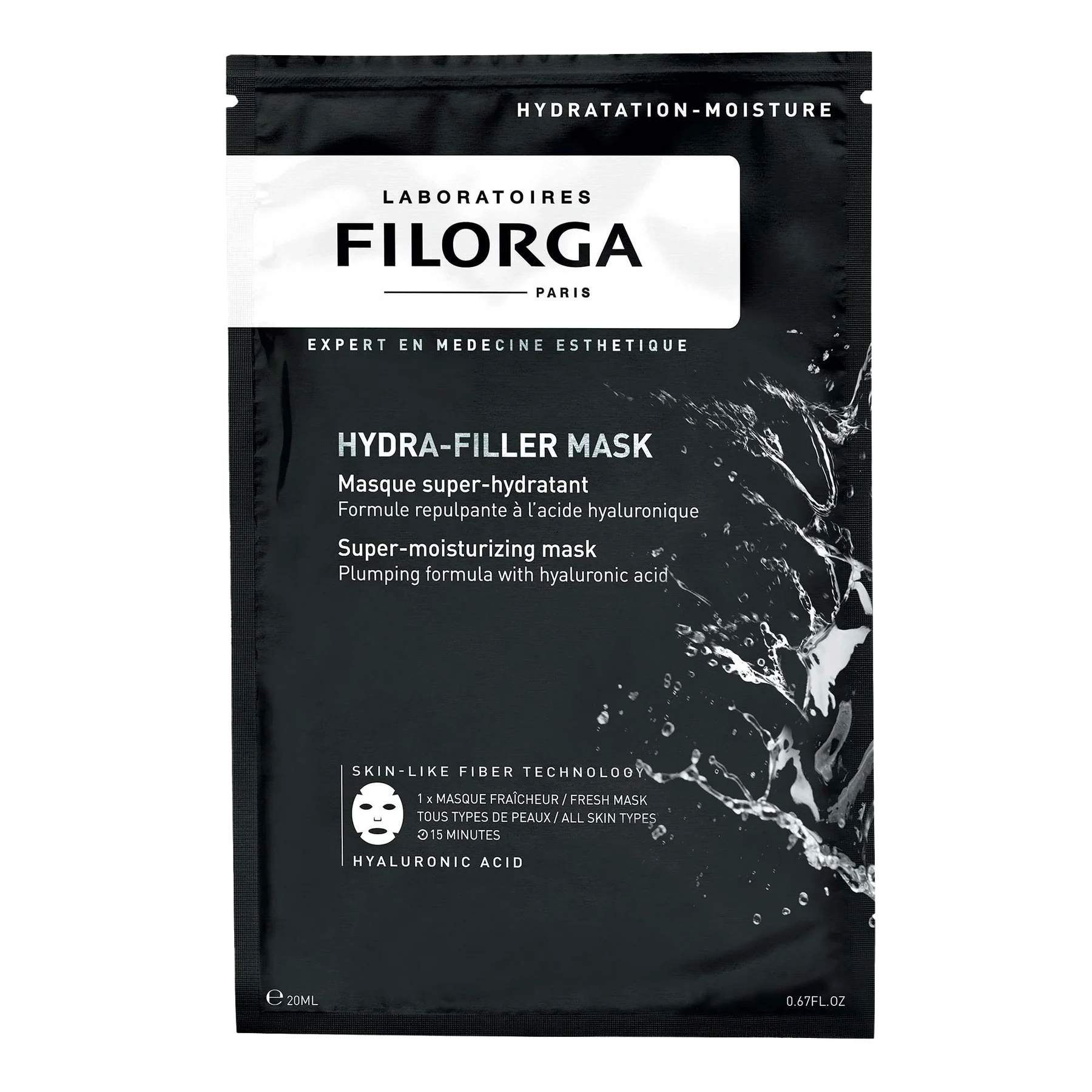 Masque super-hydratant Hydra-Filler de 23ml pour une hydratation intense et un effet repulpant immédiat.