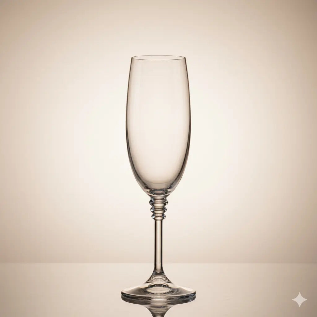 Avec sa capacité de 190 ml, sa forme élancée et son buvant fin préservent les bulles et concentrent les arômes, offrant une expérience sensorielle des plus raffinées. Le design se distingue par les trois anneaux décoratifs qui ornent le pied, ajoutant une touche de sophistication et de charme.