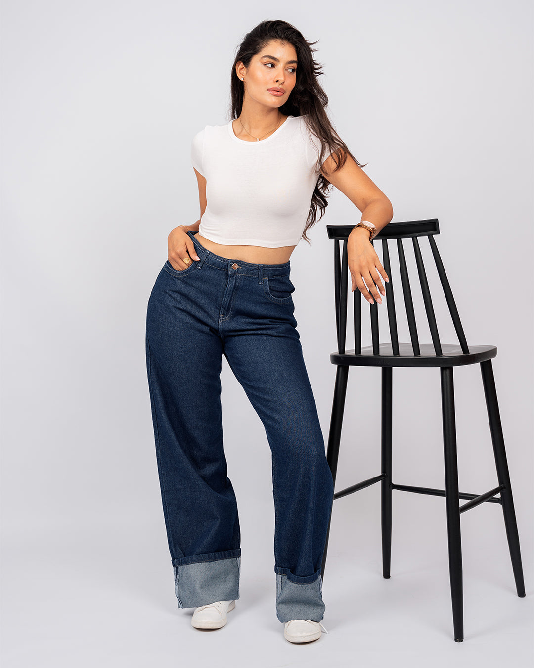 ✔️ Pantalon – Coupe Droite, Taille haut Avec Revers dans le bas