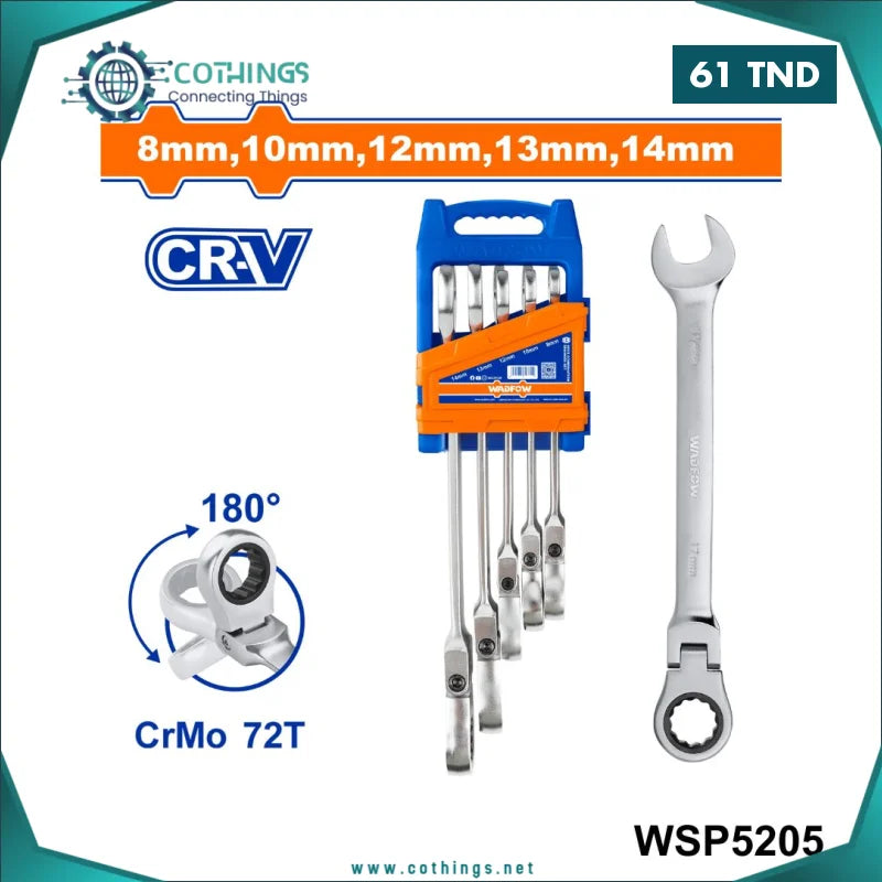 Ensemble : 5 clés à cliquet flexibles