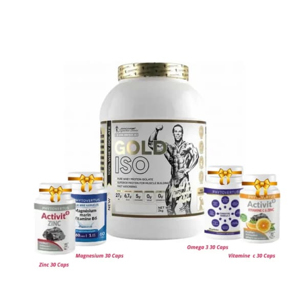 Kevin Levrone | Gold Iso Whey | 2000 G + 4 Cadeaux : Magnesium , Omega 3 , Zinc , Vit C Pack Nutrition Elite Kevin Levrone – Gold Iso Whey 2000g + 4 Compléments Nutritionnels