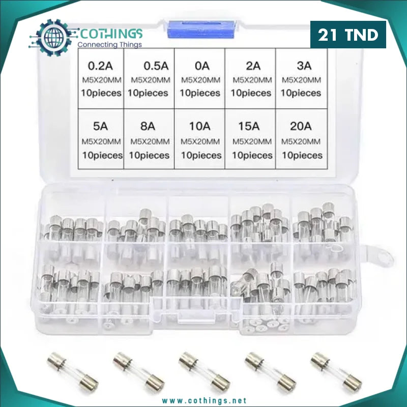 Kit de 100pcs Fusible en Verre, 5 x 20MM Ensemble de tube Fast-blow Fusibles 0,2~20A