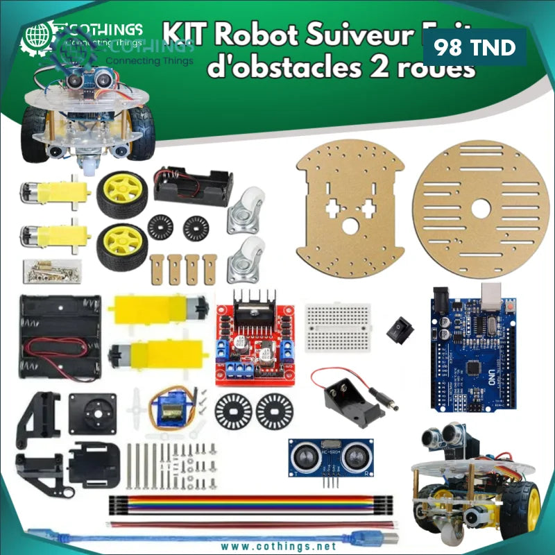Ce kit robot 2 roues (2WD) est une plateforme mobile éducative idéale pour les débutants en robotique et programmation Arduino.