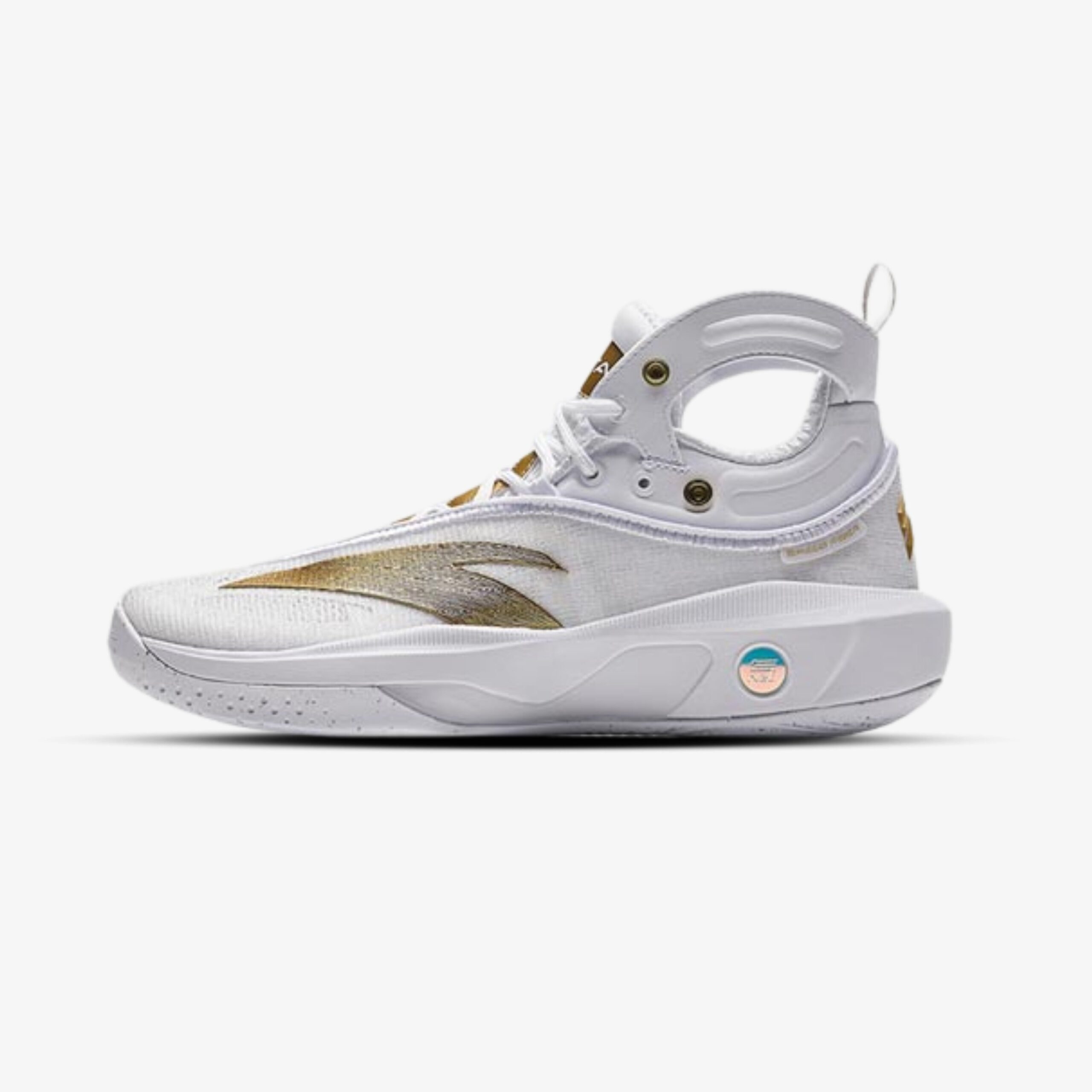 The combination of white upper and gold logo and rubber outsole gold hole offers simpleness and gracefulness in design and sense of quality in texture