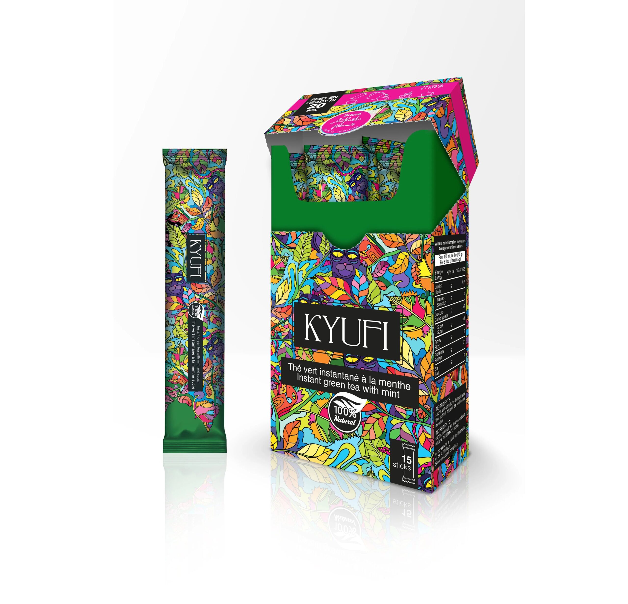 Découvrez le mélange Kyufi, 100% naturel, inspiré de la tradition marocaine du thé vert à la menthe. Prêt en seulement 20 secondes, il vous promet un moment de gourmandise. À savourer chaud ou bien frais avec des glaçons !