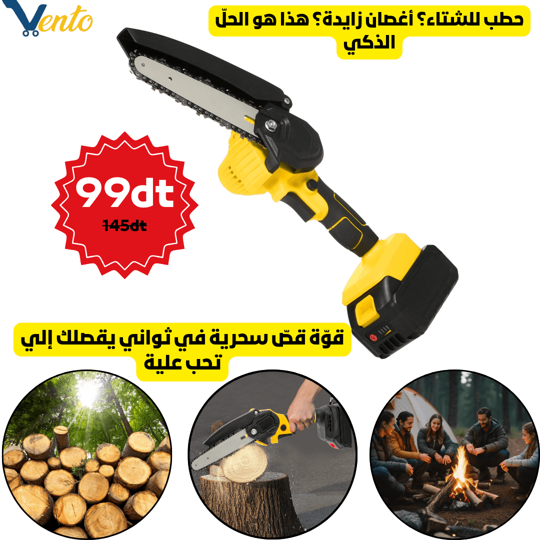 منشار حاد و سريع يقطع الأغصان، الحطب و اللوح في ثواني
