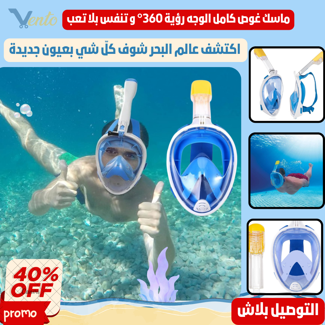 🐬 ماسك غوص كامل الوجه 360° تنفس بحرّية وعيش إحساس الحوت في البحر