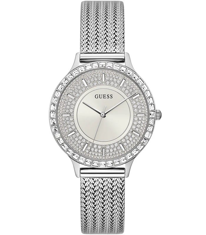 Montre pour Femme de la Marque : Guess – Référence : GW0402L1 – Fonctionnalités : Analogique – Mouvement : Quartz – Matière du boîtier : Acier inoxydable – Diamètre du boîtier : 38 mm – Matière du bracelet : Acier inoxydable – Largeur du bracelet : 16 mm – Type de verre : Minéral – Garantie : 2 ans Livré avec son coffret original, sac et certificat d’authenticité.