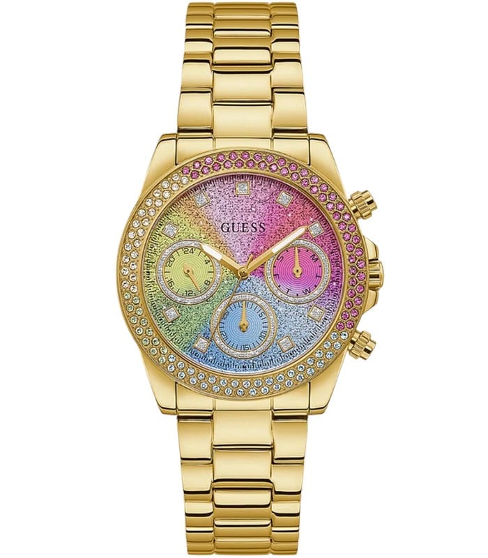 Montre pour Femme de la Marque : Guess – Référence : GW0483L4 – Fonctionnalités : Chronographe – Mouvement : Quartz – Matière du boîtier : Acier inoxydable – Diamètre du boîtier : 38 mm – Matière du bracelet : Acier inoxydable – Largeur du bracelet : 20 mm – Type de verre : Minéral – Garantie : 2 ans Livré avec son coffret original, sac et certificat d’authenticité.