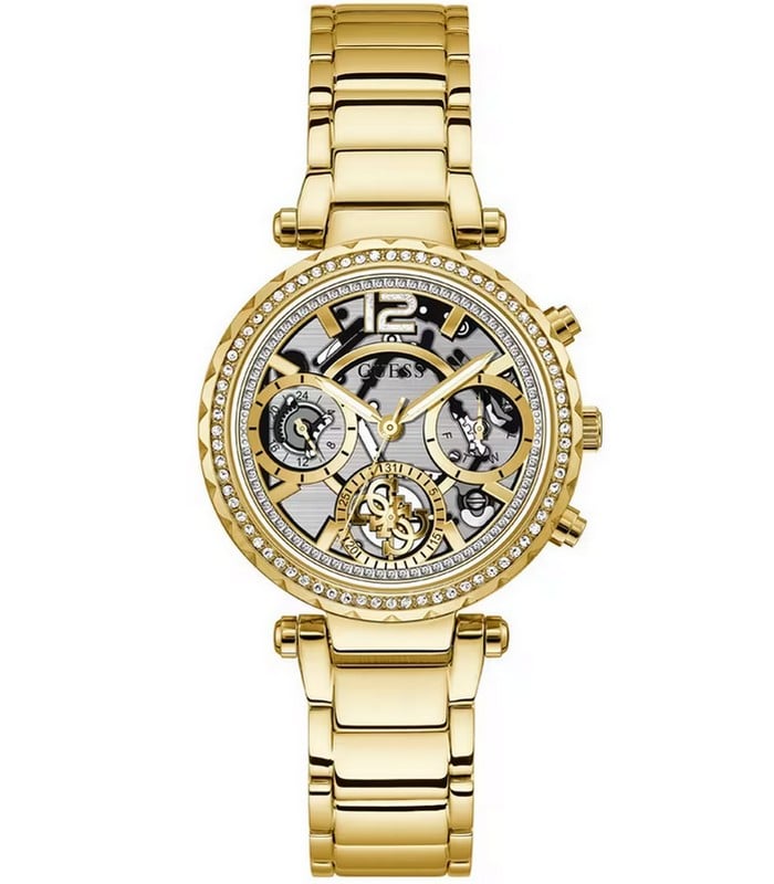 Montre pour Femme de la Marque : Guess – Référence : GW0403L2 – Fonctionnalités : Chronographe – Mouvement : Quartz – Matière du boîtier : Acier inoxydable – Diamètre du boîtier : 37 mm – Matière du bracelet : Acier inoxydable – Largeur du bracelet : 19 mm – Type de verre : Minéral – Garantie : 2 ans Livré avec son coffret original, sac et certificat d’authenticité.