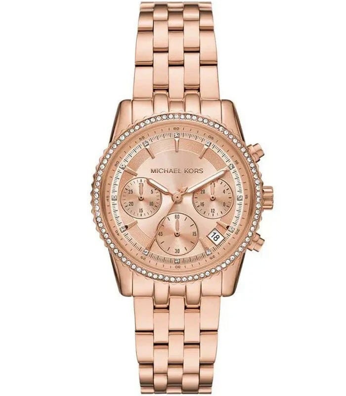 Montre pour Femme de la Marque : Michael Kors – Référence : MK7531 – Fonctionnalités : Chronographe – Mouvement : Quartz – Matière du boîtier : Acier inoxydable – Diamètre du boîtier : 35 mm – Matière du bracelet : Acier inoxydable – Largeur du bracelet : 18 mm – Type de verre : Minéral – Garantie : 2 ans Livré avec son coffret original, sac et certificat d’authenticité.