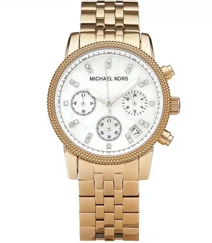 Montre pour Femme de la Marque : Michael Kors – Référence : MK5026 – Fonctionnalités : Chronographe – Mouvement : Quartz – Matière du boîtier : Acier inoxydable – Diamètre du boîtier : 36 mm – Matière du bracelet : Acier inoxydable – Largeur du bracelet : 18 mm – Type de verre : Minéral – Garantie : 2 ans Livré avec son coffret original, sac et certificat d’authenticité.