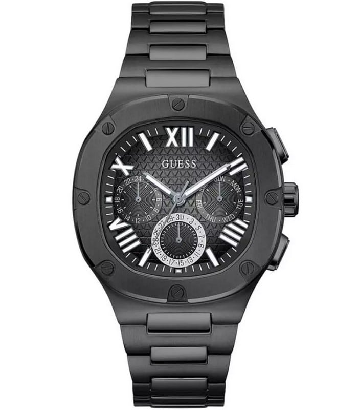Montre pour Homme de la Marque : Guess – Référence : GW0572G3 – Fonctionnalités : Chronographe – Mouvement : Quartz – Matière du boîtier : Acier inoxydable – Diamètre du boîtier : 42 mm – Matière du bracelet : Acier inoxydable – Largeur du bracelet : 25 mm – Type de verre : Minéral – Garantie : 2 ans Livré avec son coffret original, sac et certificat d’authenticité.
