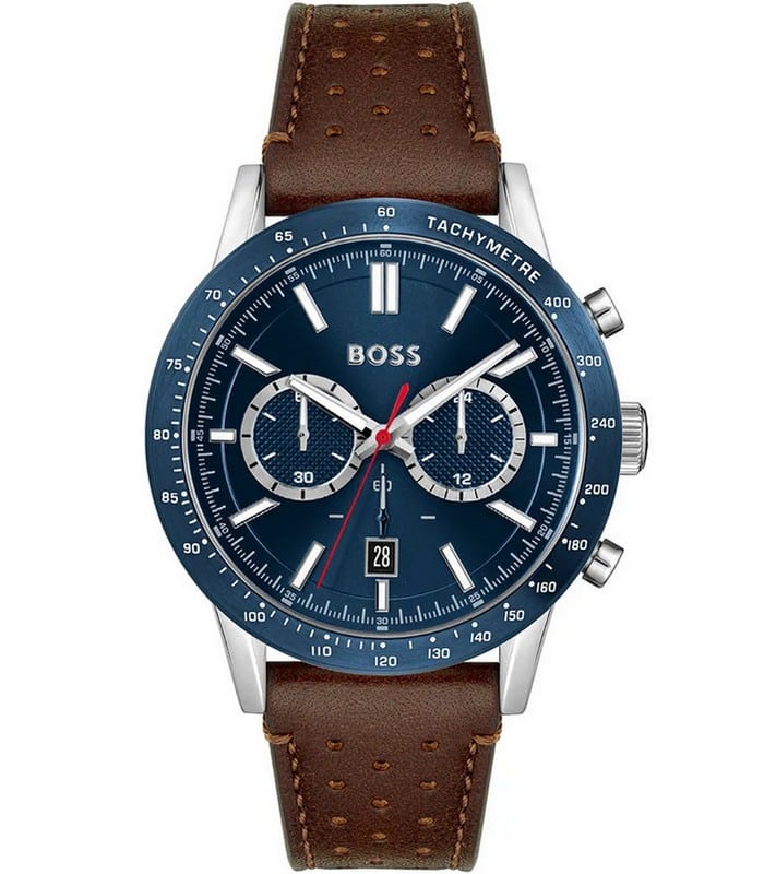 Montre pour Homme de la Marque : Hugo Boss – Référence : HB1513921 – Fonctionnalités : Chronographe – Mouvement : Quartz – Matière du boîtier : Acier inoxydable – Diamètre du boîtier : 44 mm – Matière du bracelet : Cuir – Largeur du bracelet : 22 mm – Type de verre : Minéral – Garantie : 2 ans Livré avec son coffret original, sac et certificat d’authenticité.