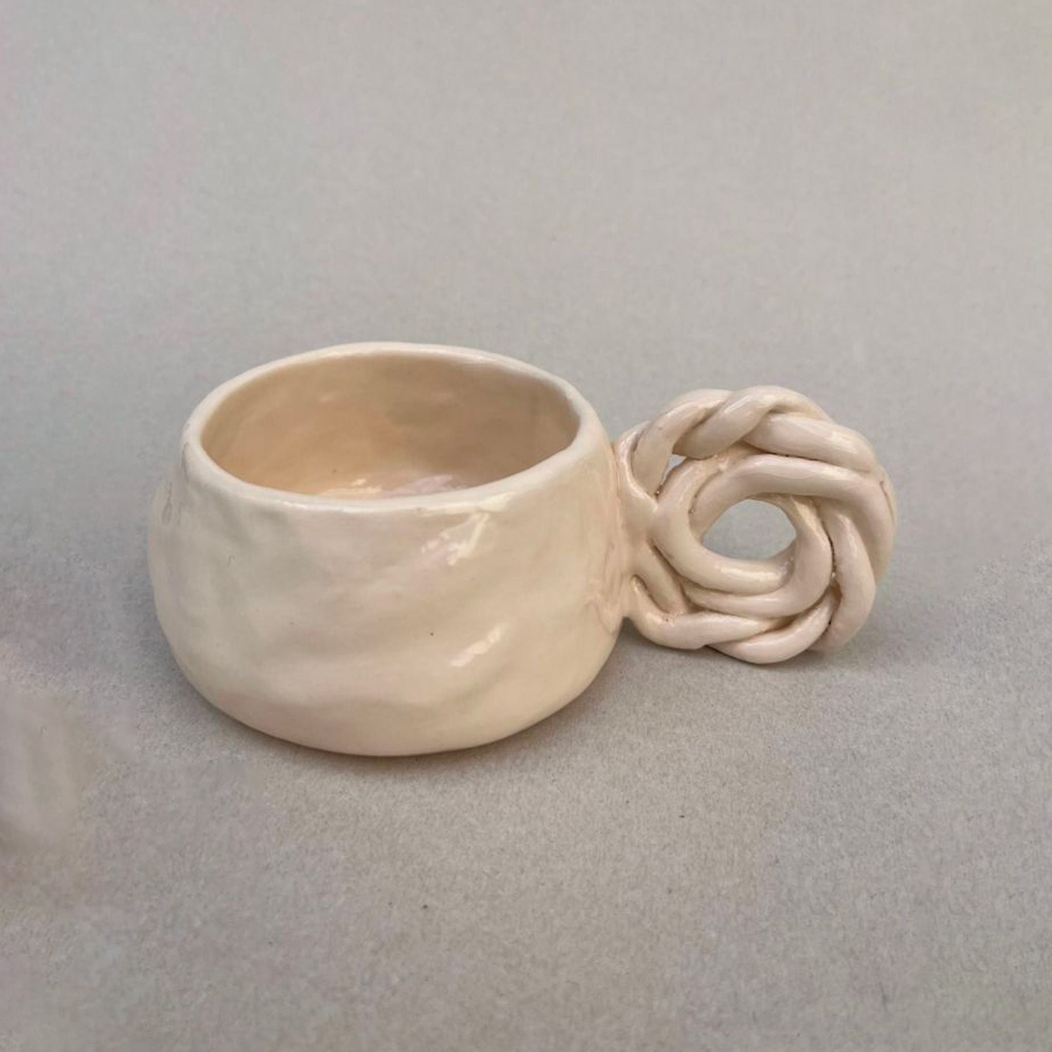 Ce mug en céramique artisanale combine l’élégance et l’originalité avec une anse torsadée unique qui attire immédiatement l’attention.