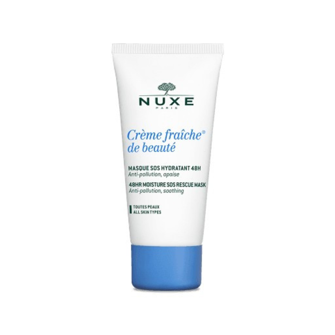 Le Masque SOS Hydratant NUXE Crème Fraîche de Beauté est un soin intensément désaltérant pour les peaux en manque d’hydratation. Sa formule végétale aux Laits végétaux et Acide Hyaluronique renforce la barrière cutanée, protège contre la pollution et redonne confort et souplesse à la peau.