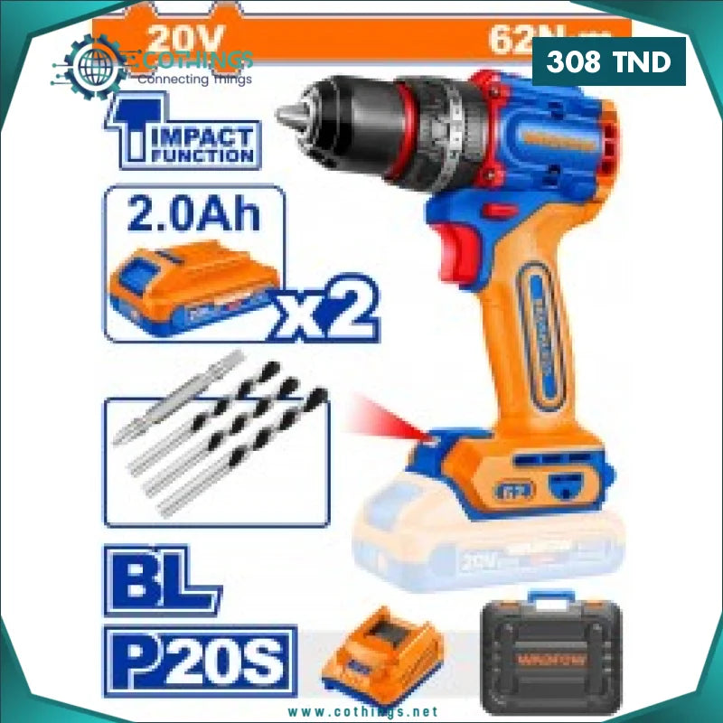 PERCEUSE À VIS SANS FIL 20 V P20S SANS BALAI S C/2 BATTERIES, CHARGEUR, ACCESSOIRES ET MALETTE