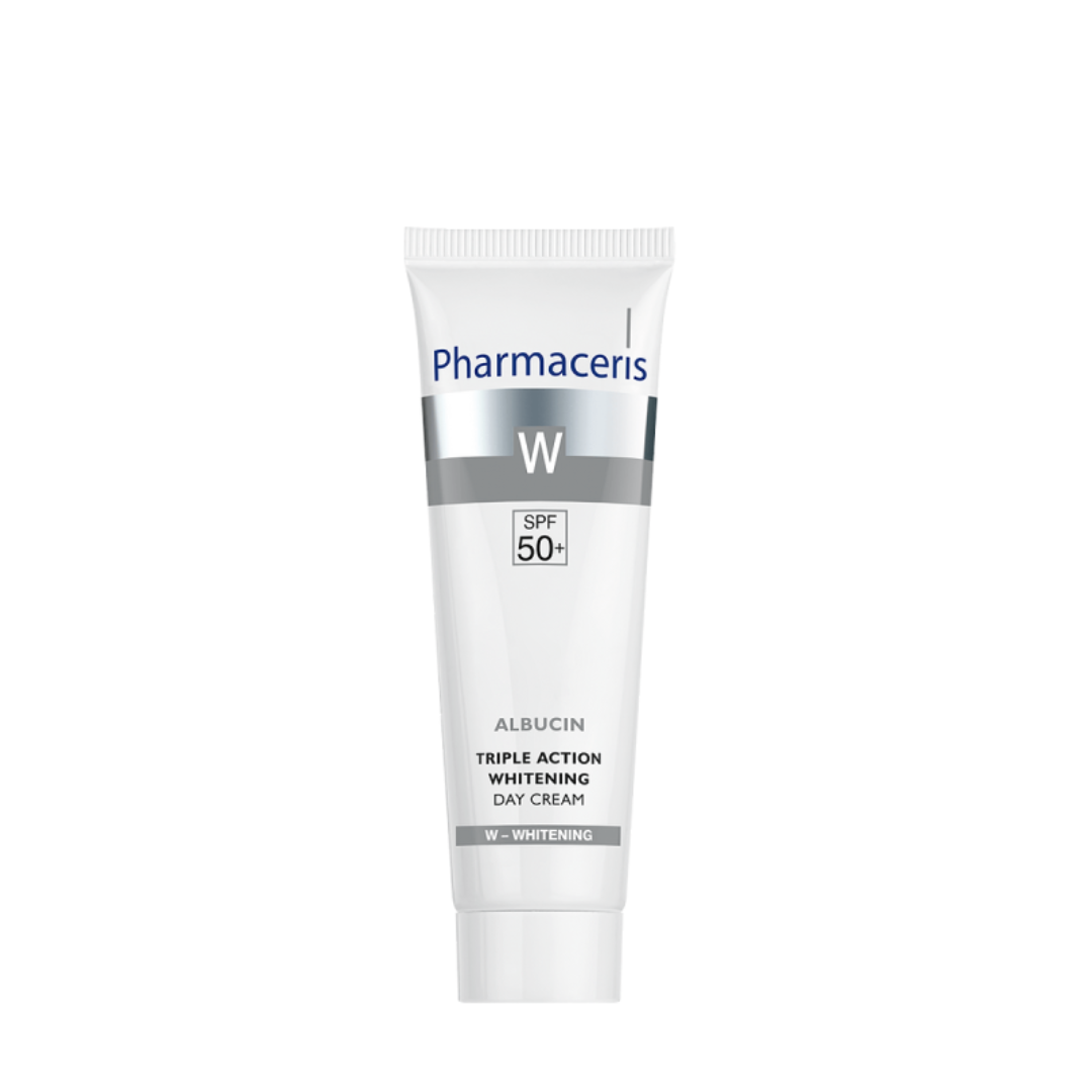 PHARMACERIS Crème Albucin SPF 50+ est conçue pour réduire les taches pigmentaires, éclaircir le teint et prévenir l’hyperpigmentation. Sa formule enrichie en niacinamide, vitamines C et E, et filtres solaires agit en synergie pour une protection et un soin optimal des peaux sujettes aux taches et à l’irrégularité du teint.