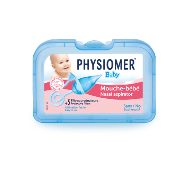 PHYSIOMER Mouche Bébé est un aspirateur nasal doux et hygiénique conçu pour soulager efficacement la congestion nasale de bébé et faciliter le retour à une respiration normale.