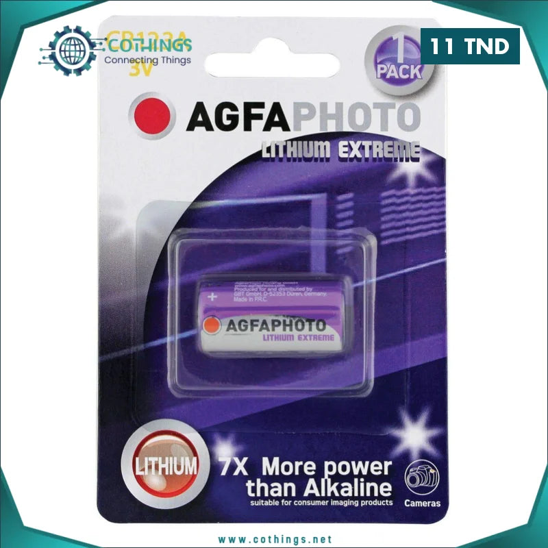 Pile Lithium AGFAPHOTO CR123A – 1 pièce